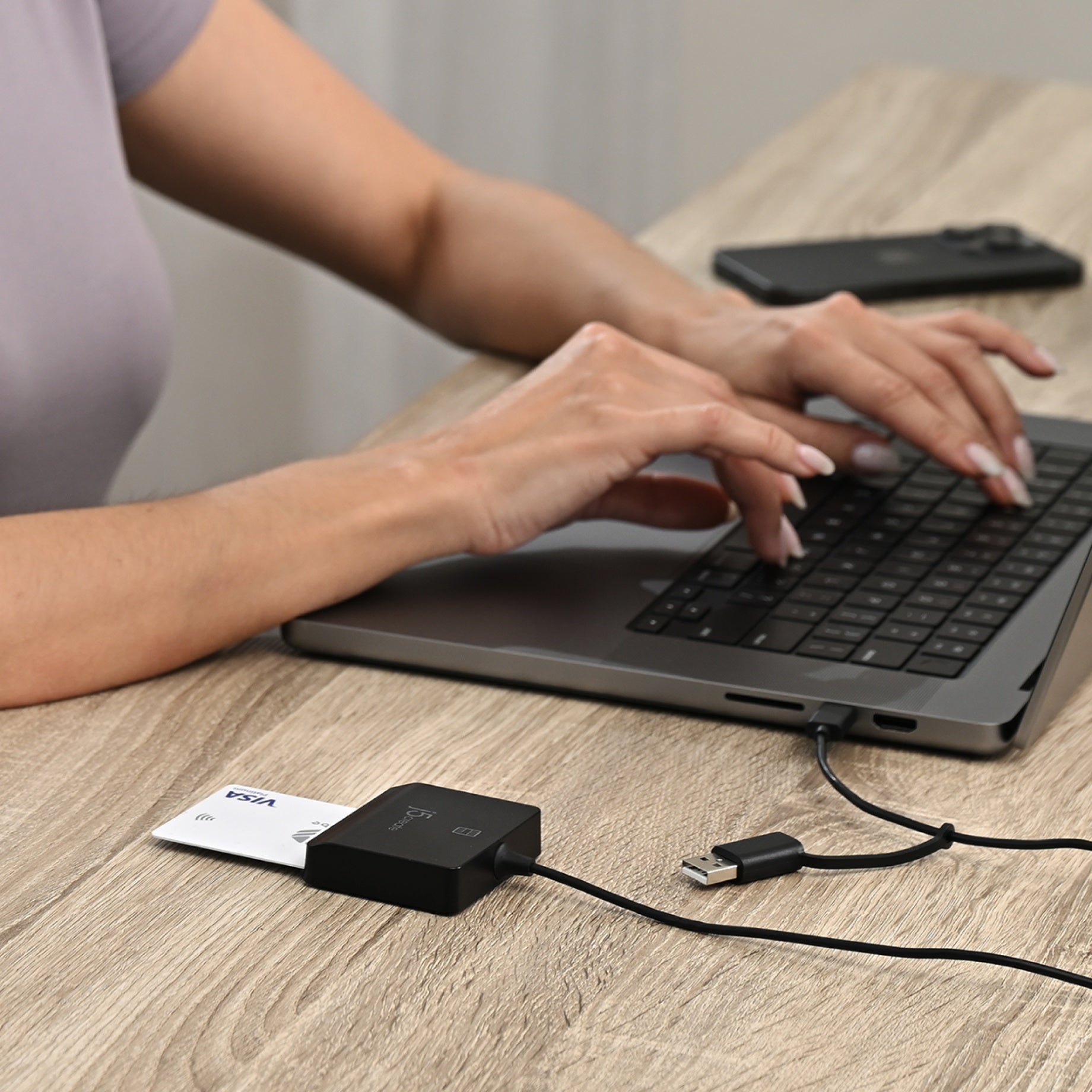 可讀寫 ISO 7816 Class A/B/C 規範,支援各大銀行晶片金融卡、健保卡、儲值 IC 卡及自然人憑證 IC 卡